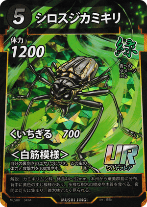 - 攻撃後、自分のターン終了時にシロスジカミキリの体力が1300に戻るため、そこで破壊されます。また、攻撃は終了しているため、縄張りは引きません。